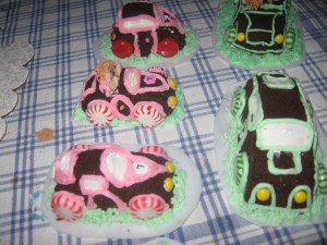 These little race cars are perfect for birthday parties or Father’s Day. I used mints and life savers as wheels. You need to make the actual cars out of brownie or pound cake. Use mini MM’s for headlights and you are ready to roll.