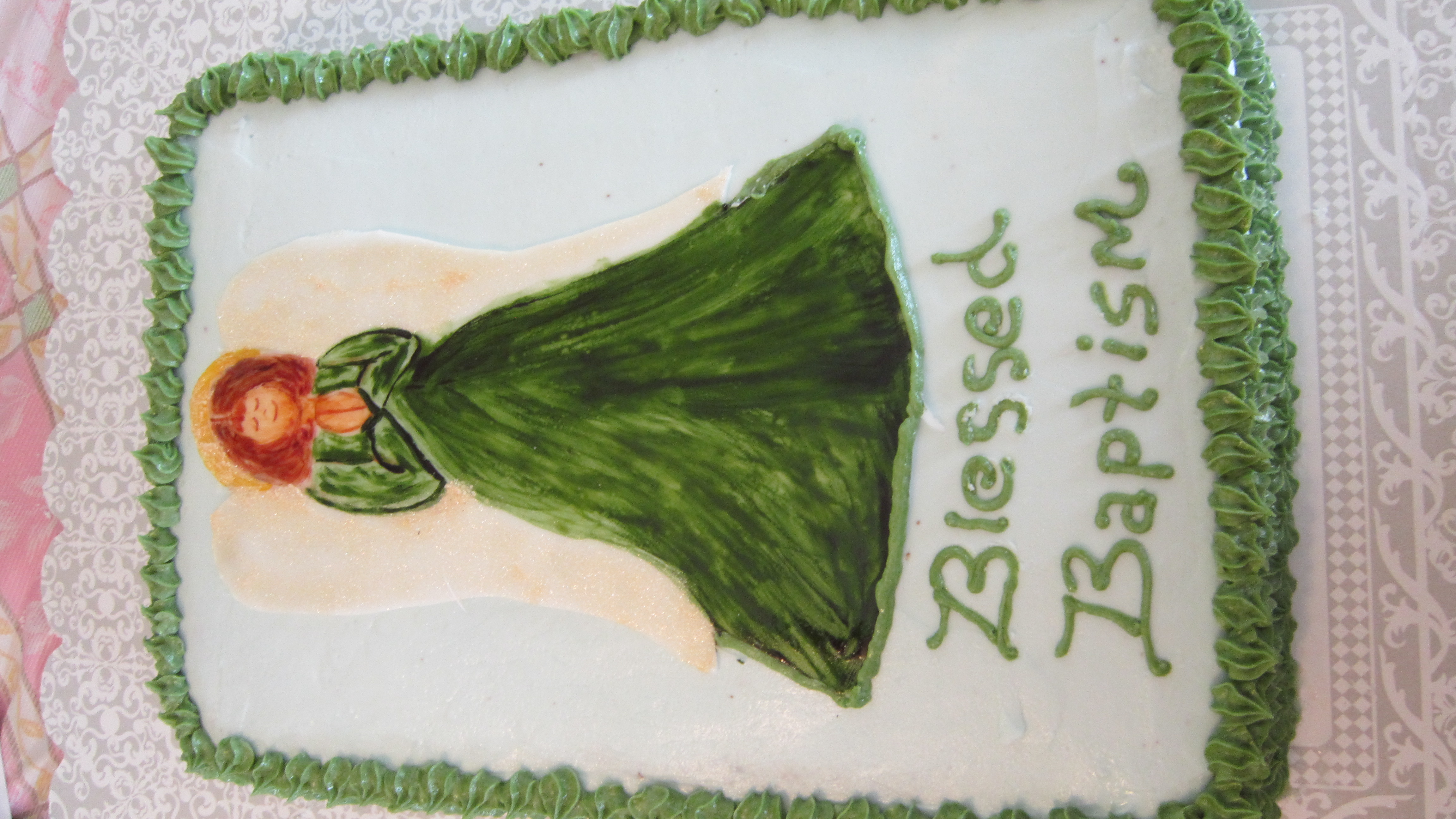 Both of these angels were hand painted on fondant. You can paint on fondant using clear vanilla extract and gel food coloring. The second angel was from a stain glass pattern I had made years ago. I made the little stain glass angels as gifts for family and friends a couple of years ago for Christmas.