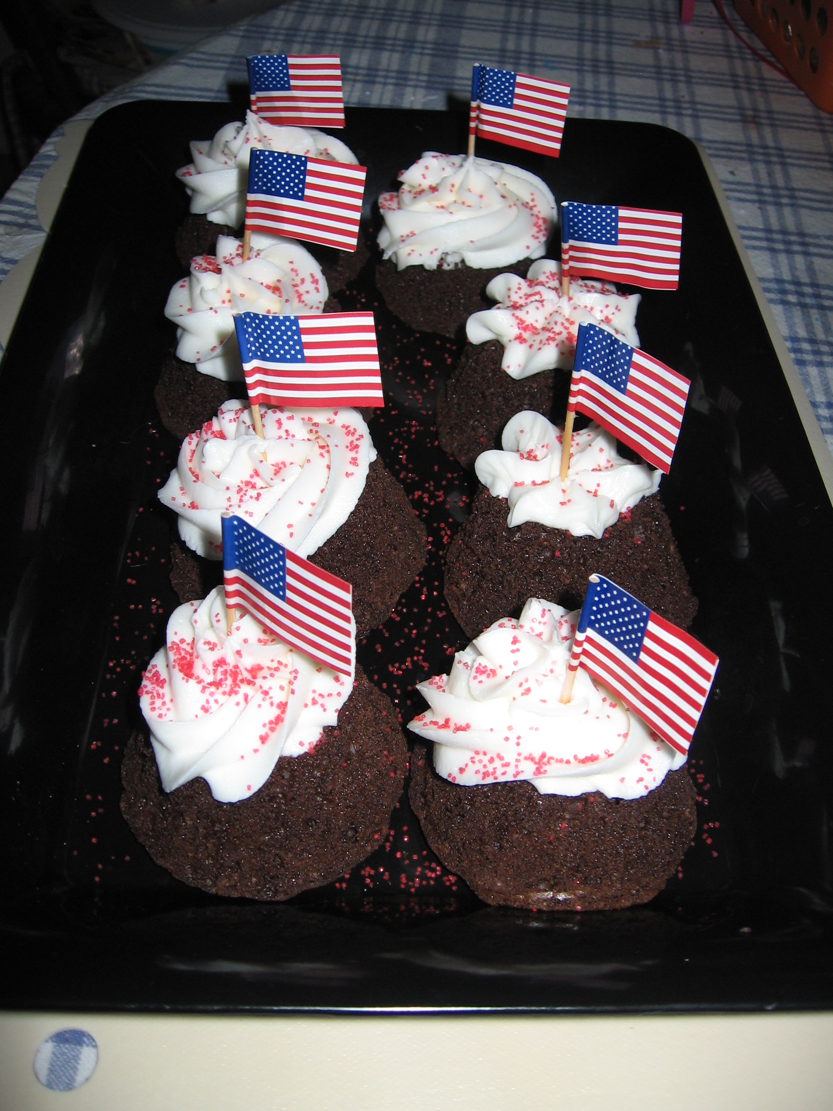 Use a mini bundt pan that you can get at Michaels or JoAnns. Add a swirl of buttercream or whip cream and some red sugar sprinklers and a flag and you are all ready for your 4th of July celebration.