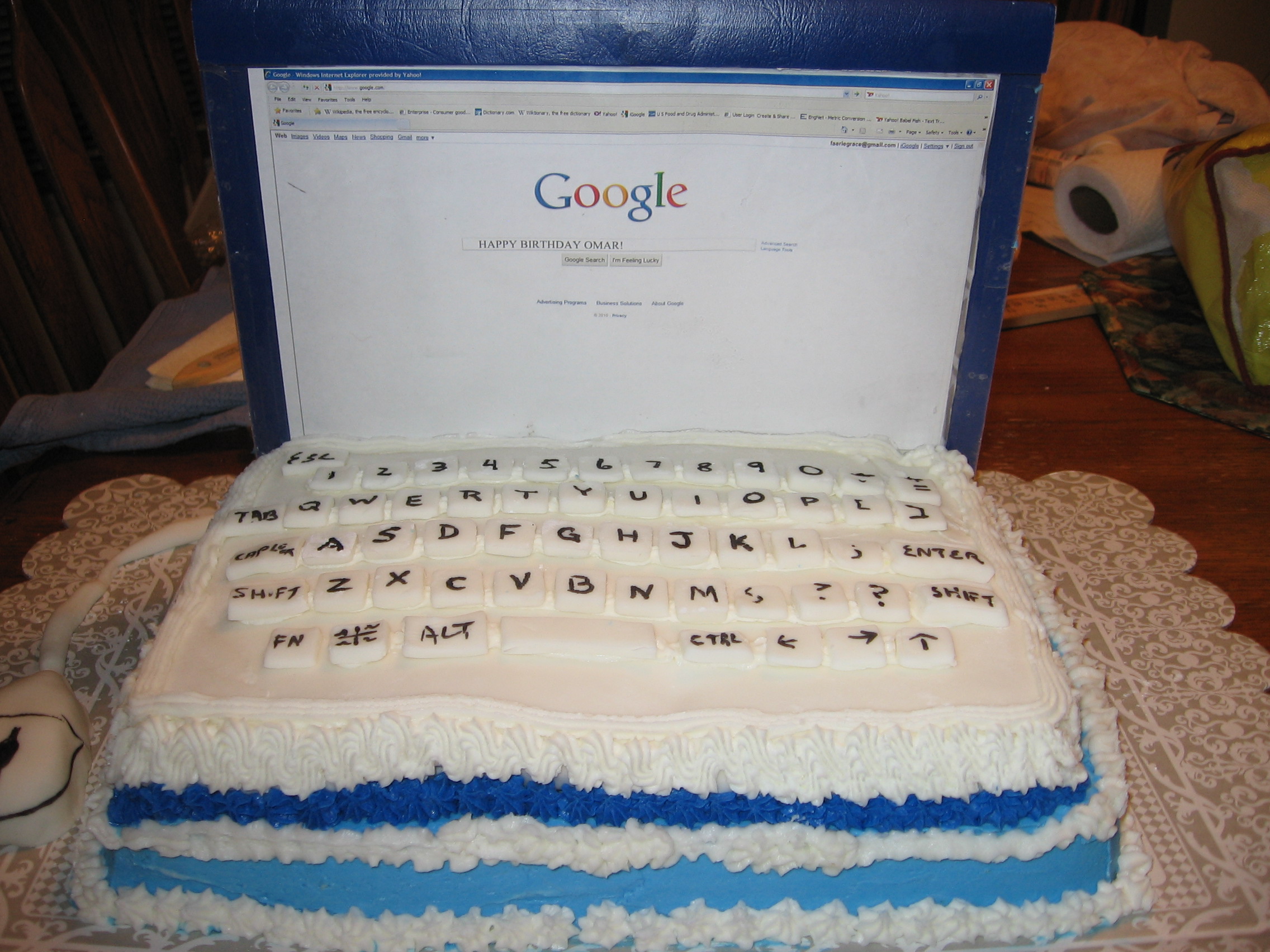The screen of the computer is an actual picture that is put inbetween a self laminating pouch to seal it in. Next it is hot glued to cardboard the the sides and back are covered with fondant. The letters on the keyboard are hand painted squares.