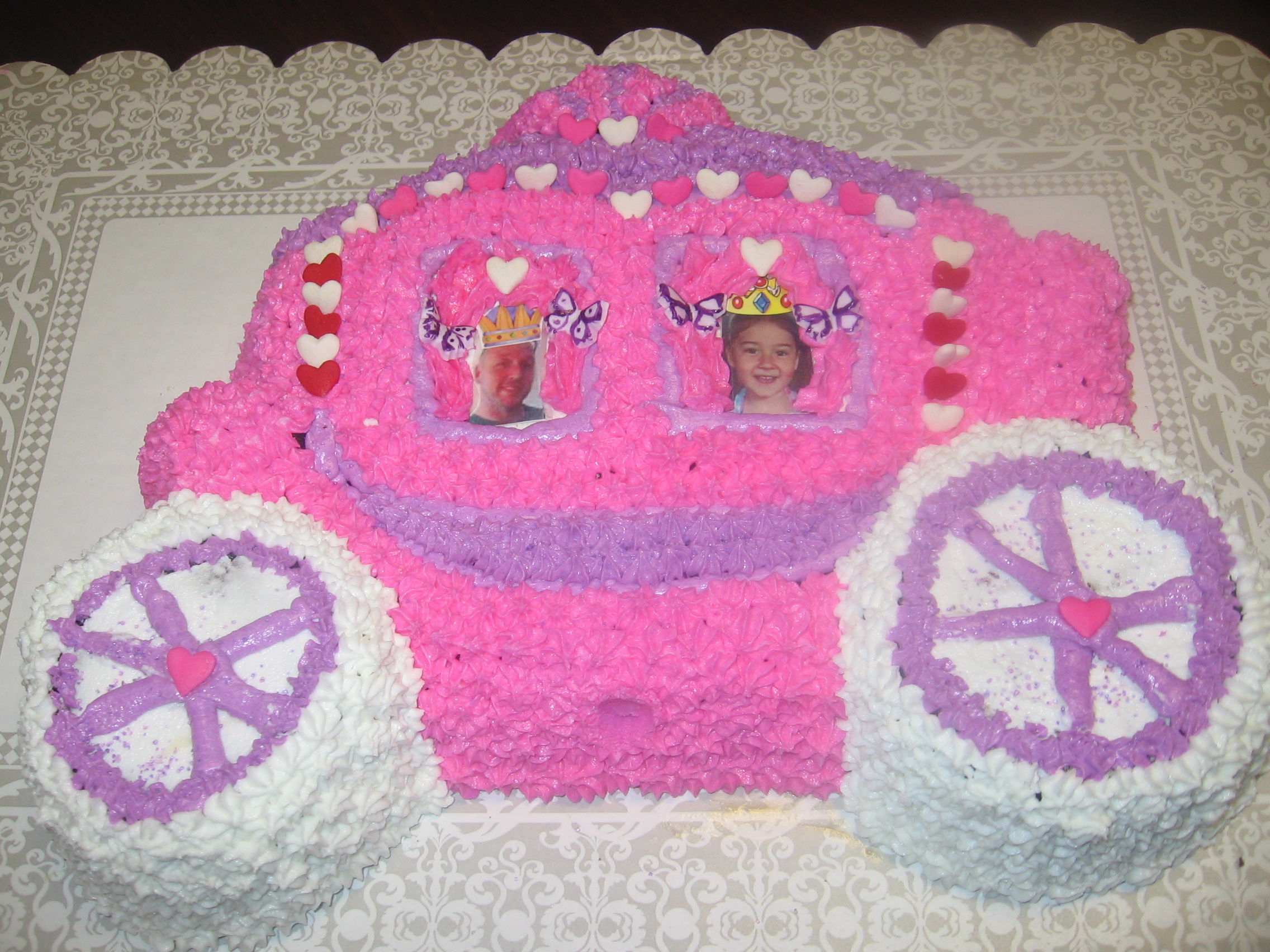 One of my friends at work wanted this cake for her daughter but we added a twist. I laminated pictures of her daughter and husband as riders in the carriage. Just use self laminating pouch to seal the pictures and pipe icing around them to make the curtains.