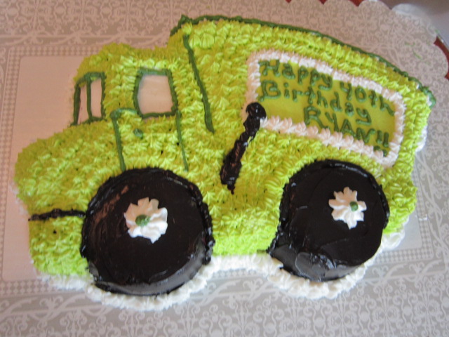 This little dump truck cake was a hit with little boys no matter what age. The cake is buttercream icing except the tires. If you start with chocolate icing and add black food coloring gel you won’t have to use too much.