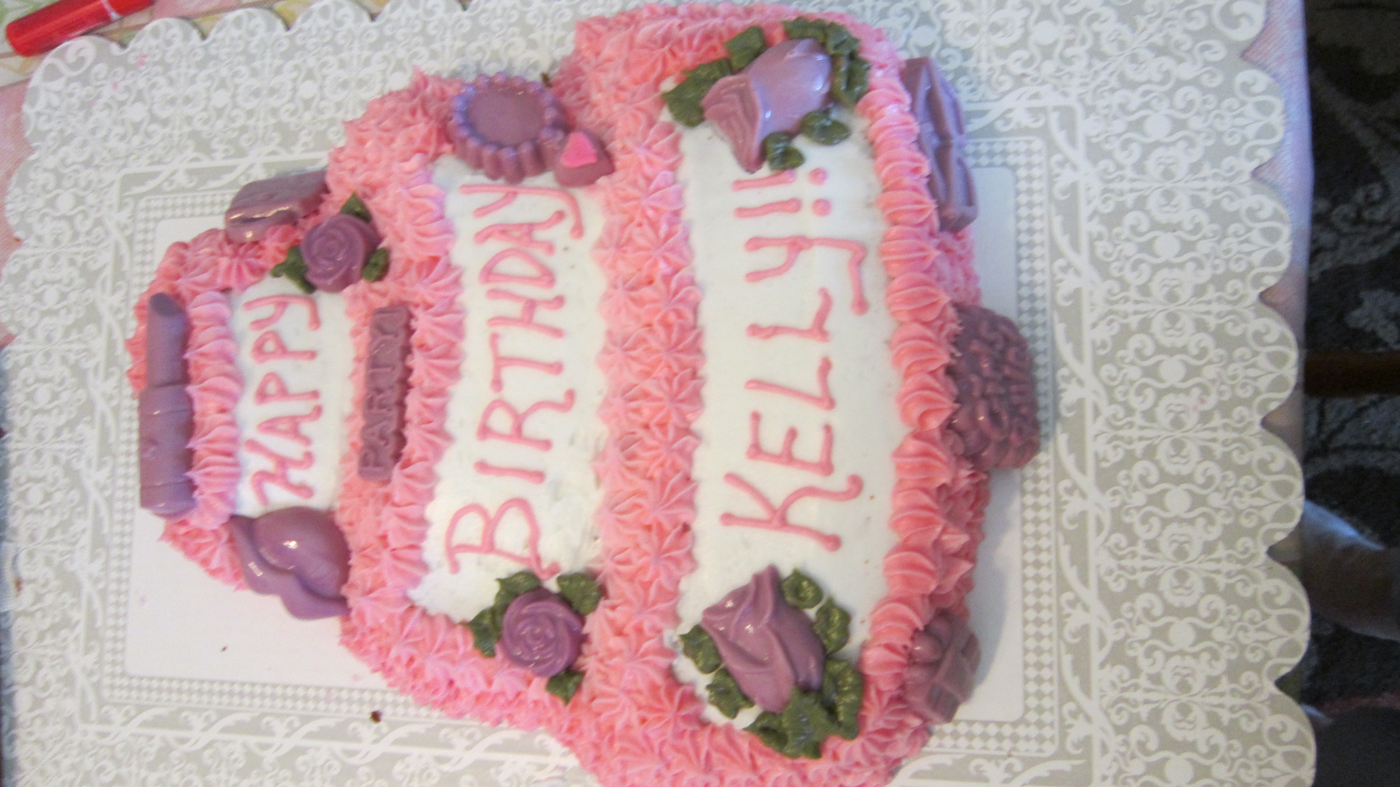 Every year when my daughter has her birthday I feel very old. This year I want to make her a fun cake all about her. All the candy pieces from the lip stick to the sun glasses were made from Candy Melts and molds I purchased off the internet. I am truly blessed to have such a great daughter. Happy Birthday Kelly!