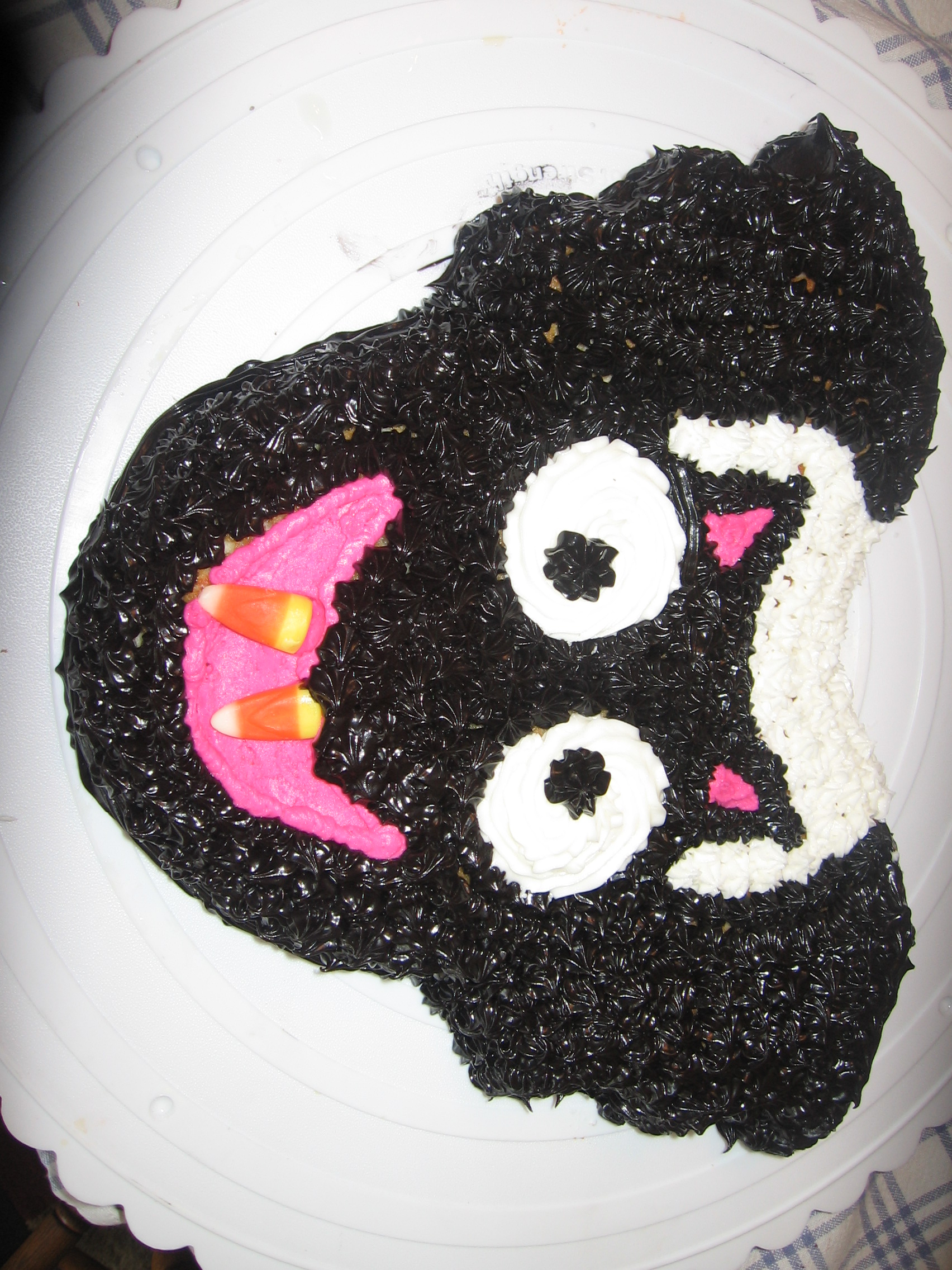 This Bat Cake is a fun center piece for any party. I purchased the pan from Michaels. I used a chocolate icing then added place food coloring gel to get the dark black color. If you start with a white icing you will have to use quite a bit of food coloring gel to get it dark enough. Don’t forget some candy corn fangs!