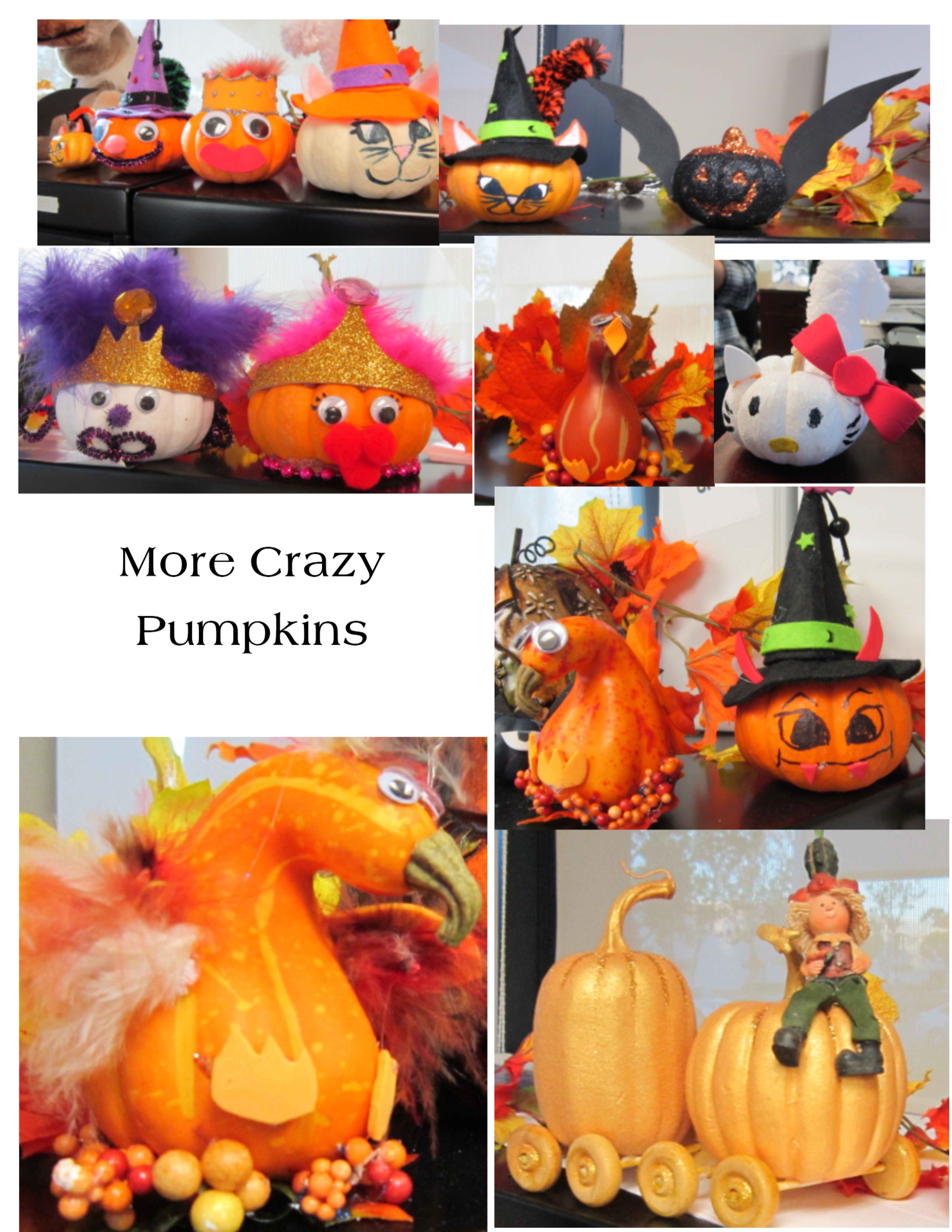 Today my friends and I had a destress session making some crazy pumpkins. We managed to wipe out a conference room and had a lot of fun all in the preparation for our Halloween Bake Sale on Monday. So here are some of our crazy pumpkins from Hello Kitty to a funky looking duck I hope this give you some ideas for decorating your pumpkins! Happy Halloween!