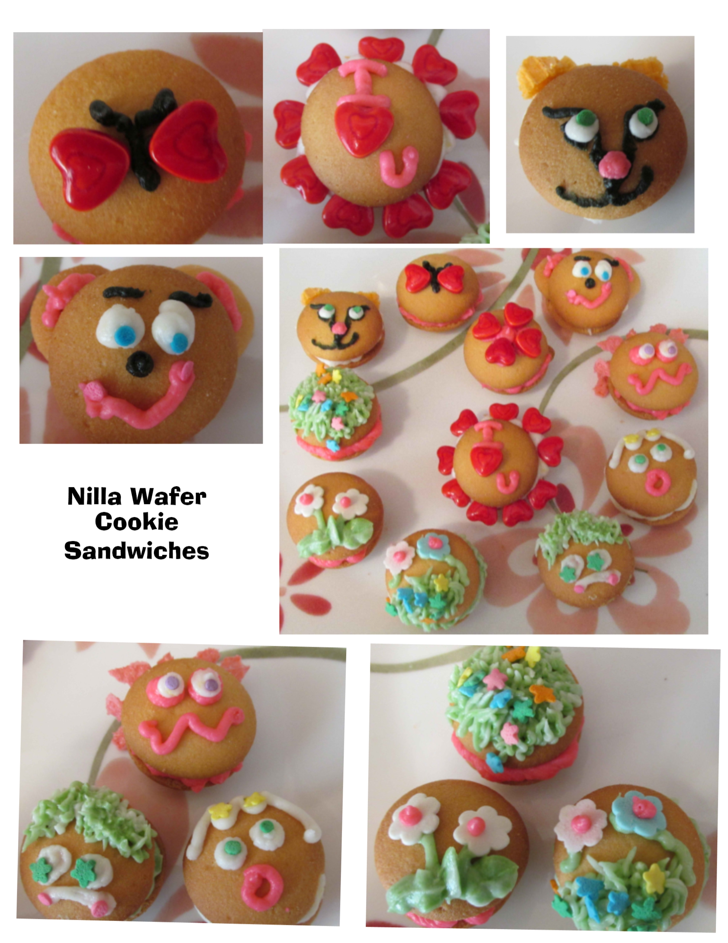 These little cookie sandwiches are a great activity for kids of all ages. Whether they want to make funny faces, pretty flowers, a little butterfly, pretty kitty or a special messages, these little wafers are perfect. I used a little buttercream icing on the bottom wafer then added the top wafer after I had decorated them. If you mess up I guess you will just have to eat it to make sure they taste alright and try it again. These are also great for bake sales or lemonade stands.
