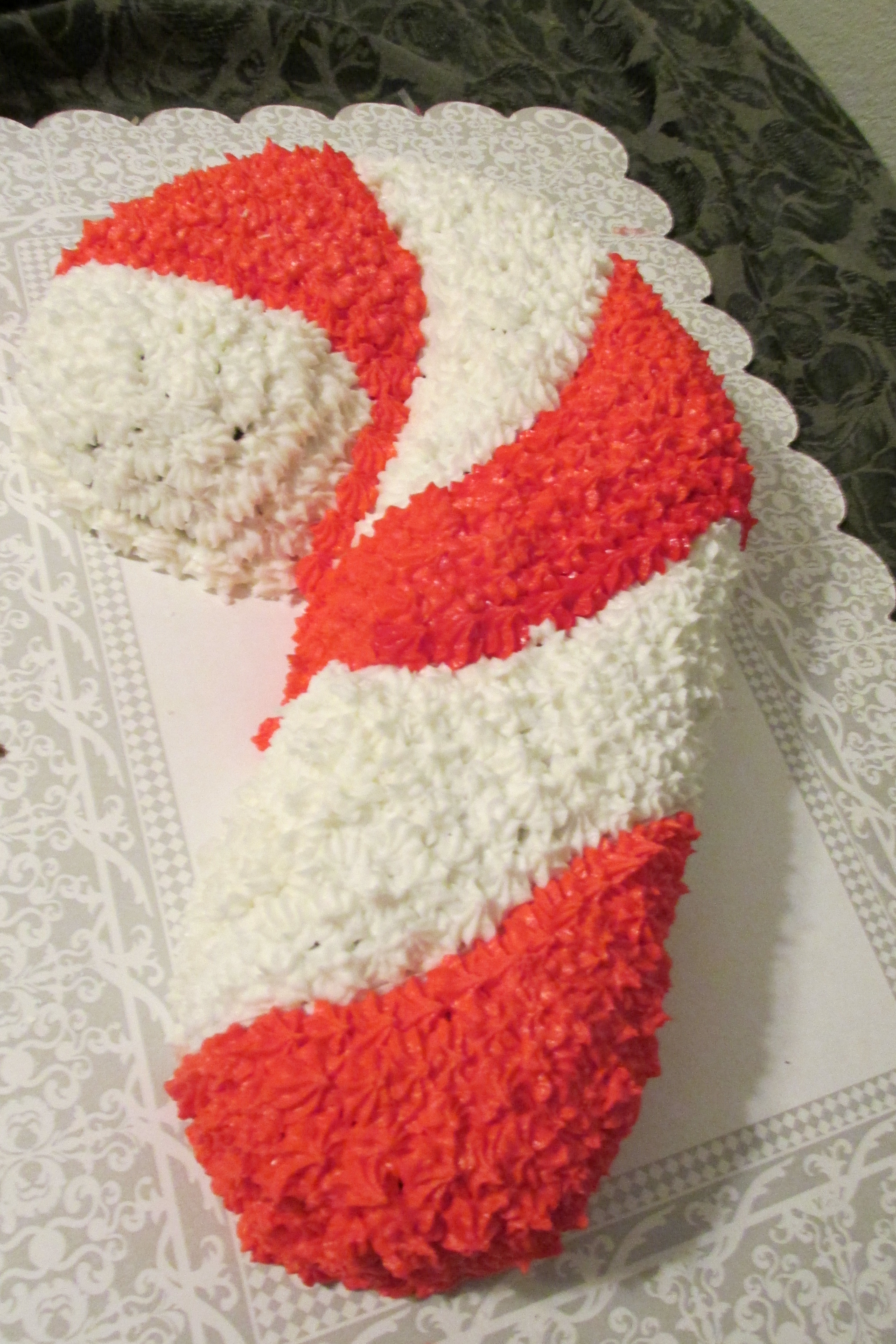 Last year I received this candy cane pan as a gift and this was the first time make a cake with it. Very easy to ice and it was a hit at the bake sale we just had.