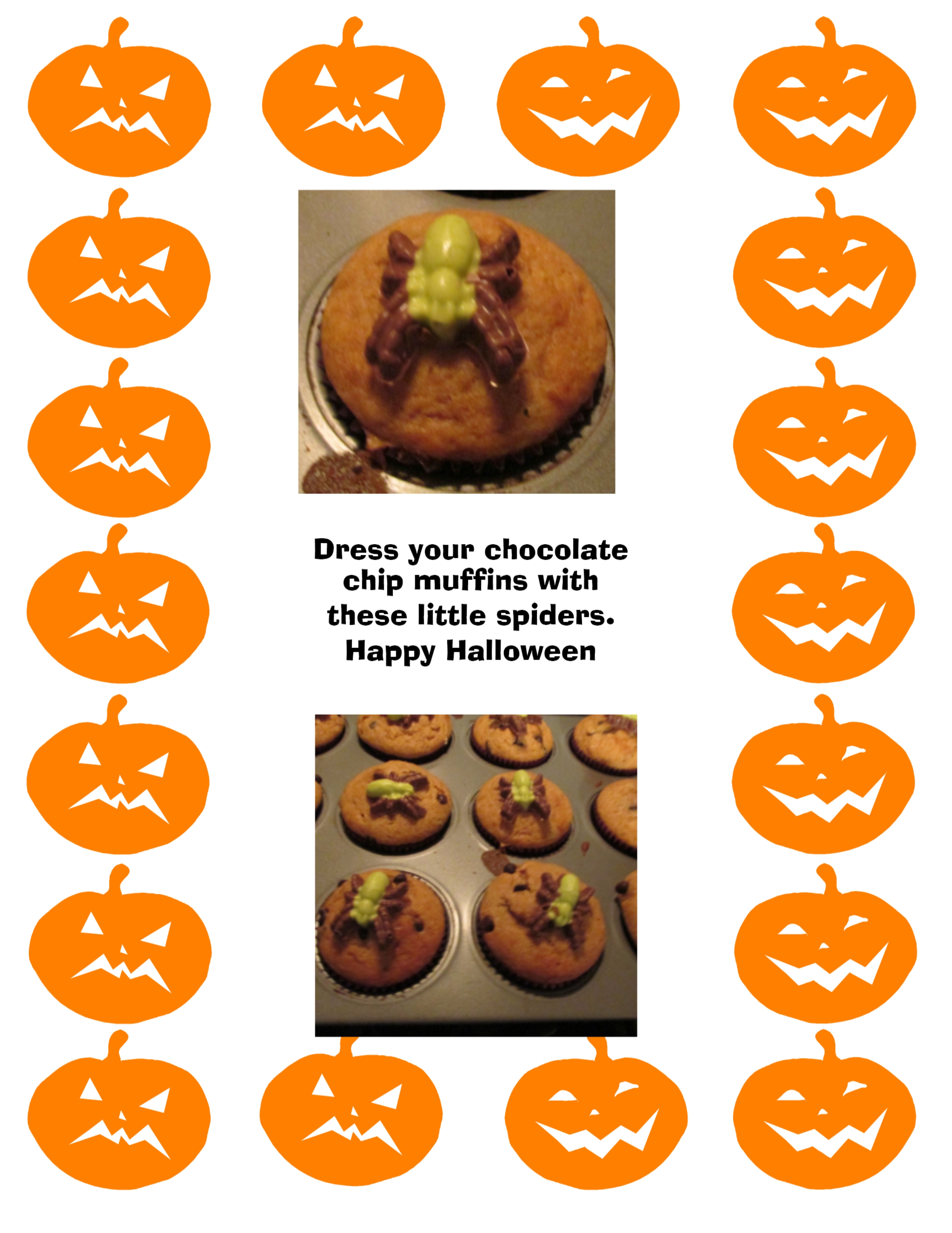 This entry was posted in Bake Sales, Cupcakes & Gifts to Make, Halloween Treats & Crafts and tagged bake sale, chocolate chip muffins, cupcake. Bookmark the permalink.