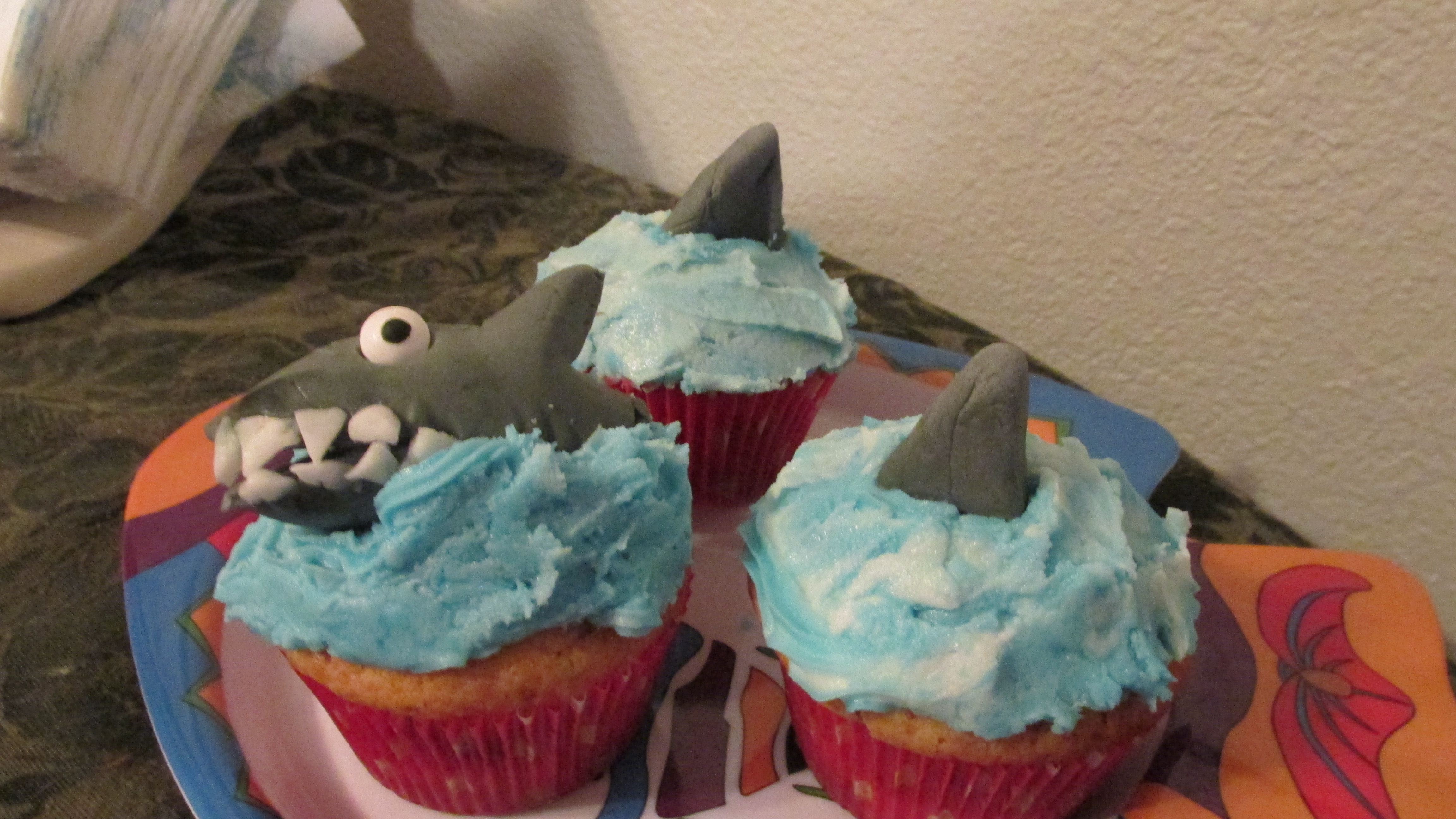 What better way to celebrate Shark Week on the discovery channel then shark cupcakes. I made these shark fins and sharks with fondant.