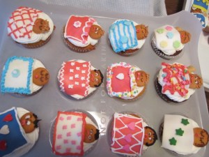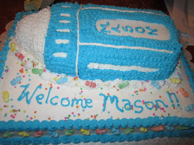 This two tier baby shower cake and 100 cupcakes was a challenge. Each of the little sleeping babies had a fondant cover and their faces were mini Nilla Wafers.